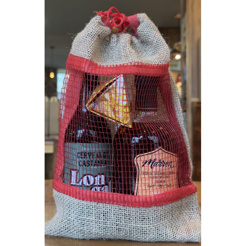 Box constituída por: 1 Licor de Castanha Marron 20cl 1 Cerveja de Castanha 1 Queijo 300g 1 frasco de Mel Montesino com máscara de Careto 100ml 1 Magneto Bragança Saco de serapilheira + saco de papel incluídos no preço Cesta não incluída
